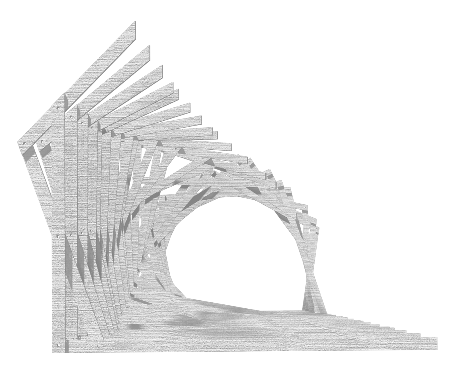 “As the task was to create within six weeks altogether three recognisably similar yet functionally different constructions on the urban scale, it was clear that handicraft will not take us far. Therefore, local timber house manufacturers were called in as the robotic production lines yield unique details just as quickly as repetitive ones. In order to get the numerated details from the factory, each of them had to be modelled with all dovetails, sections and bolt holes. The approach had to be systematic – a common parametric system was created on the basis of the students’ design concept, this way they could create a complex structure by modelling free-form surfaces and change its shape, density and the element dimensions. The given script divided the prescribed surface into ribs with their geometric and constructive logic defined up to the last dovetail and bolt hole. This way the students could concentrate on designing the objects and spatial relations without having to worry about combining the sticks later.”